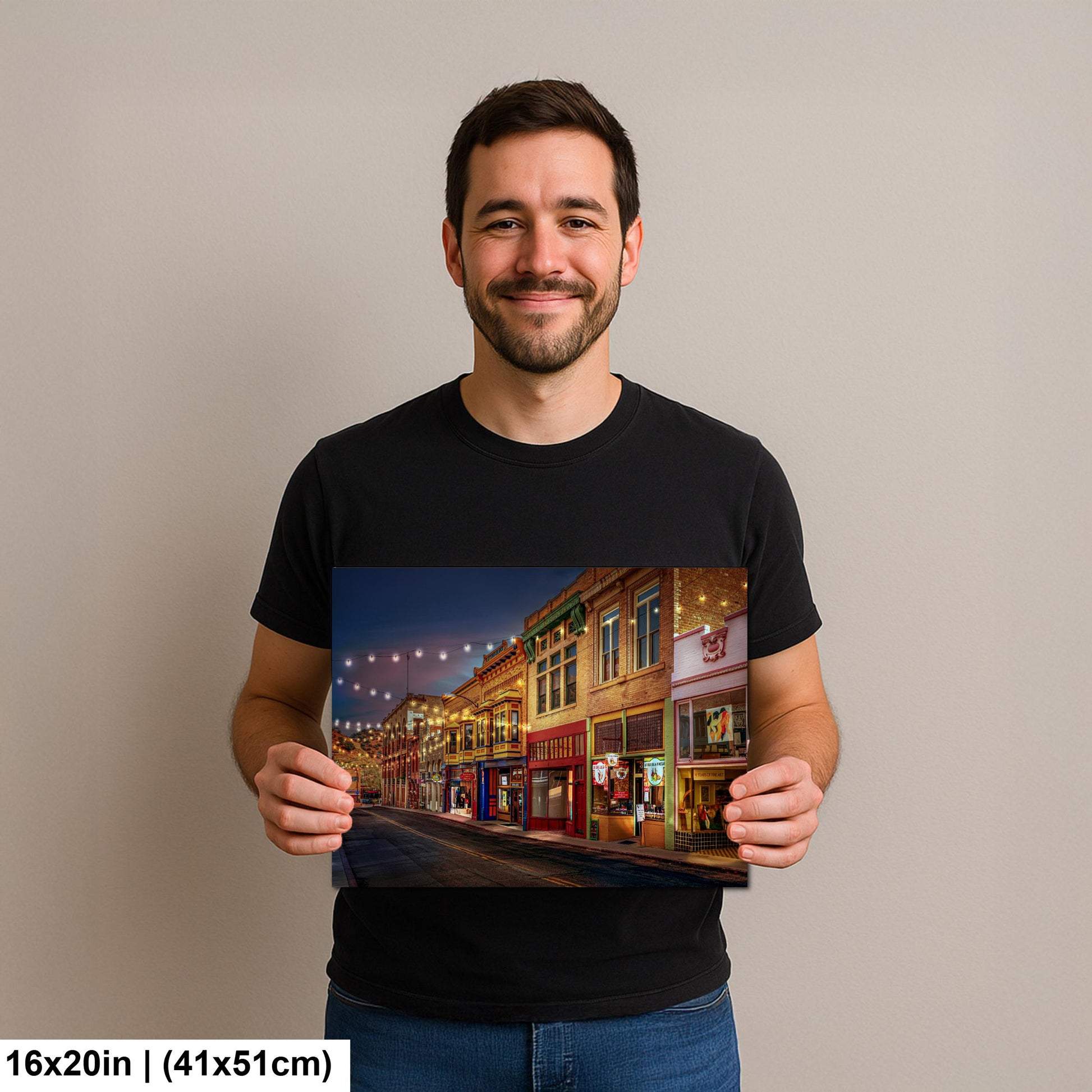 This print adds warmth and vintage charm to any room, ideal for living spaces, offices, or Southwestern-themed décor. It pairs beautifully with rustic or modern interiors, inviting a sense of history and community. The image honors Bisbee’s enduring spirit — a town that still hums with light, creativity, and desert magic.